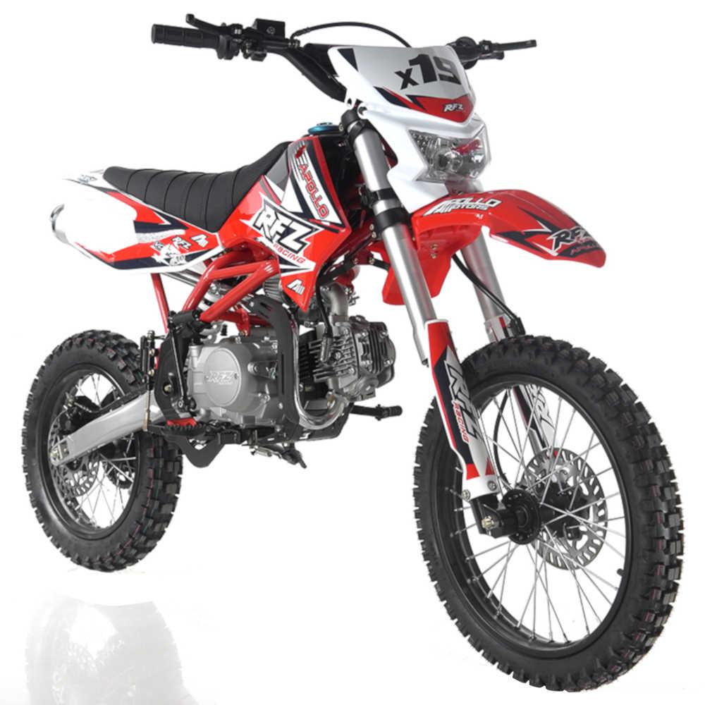 Affordable FUNĀ DB-X19 Dirt BikeĀ mid-size welded twin-spar steel frame is tough enough to stand up to demanding riding, and a durable 4-stroke, air-cooled 125cc engine supplies reliable power every time. With a 34 inch seat height, and a net weight of 147 pounds, the DB-X19 is perfect for olderĀ youthĀ andĀ adult riders. A 4-speed manual transmission allows for high-performance shifting from advanced riders looking to improve their skills. The Apollo DB-X19's knobby all-terrain tires on a 17 inch front wheel and 14 inch rear, plus front and rear disc brakes, and a trail ready suspension make this dirt bike capable of handling the toughest terrain! And even though this is not a dual sport motorcycle, it features a headlight for safer riding on dimly light trails.Ā